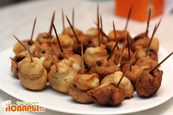 При помощи чайной ложки из запеченной массы формируем яйца и ложим их в горячий сироп. Когда сироп остынет, добавляем коньяк. Готовому блюду дать постоять два часа.