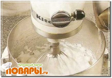 Взбить в пену яичные белки с добавлением нескольких капель лимонного сока и постепенно влить сироп. Продолжать взбивать до полного охлаждения смеси.