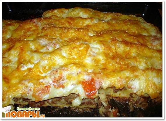 Заливаем трубочки соусом Бешамель и ставим в духовку на 1.5 часа, за 15 минут до готовности посыпаем тертым сыром.