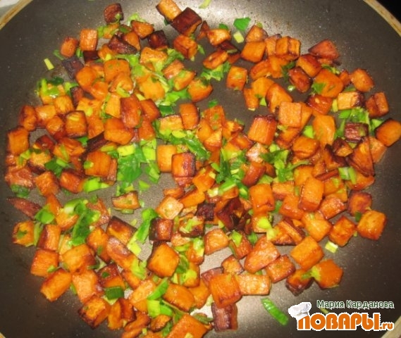 Обжариваем на оливковом масле 8-10 минут, часто помешивая