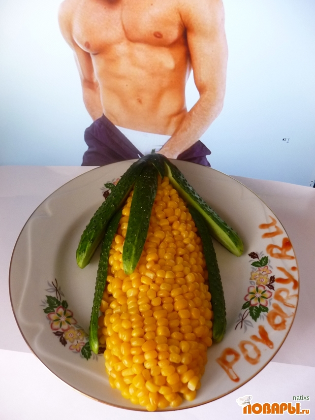 Украшаем кукурузой и огурцами