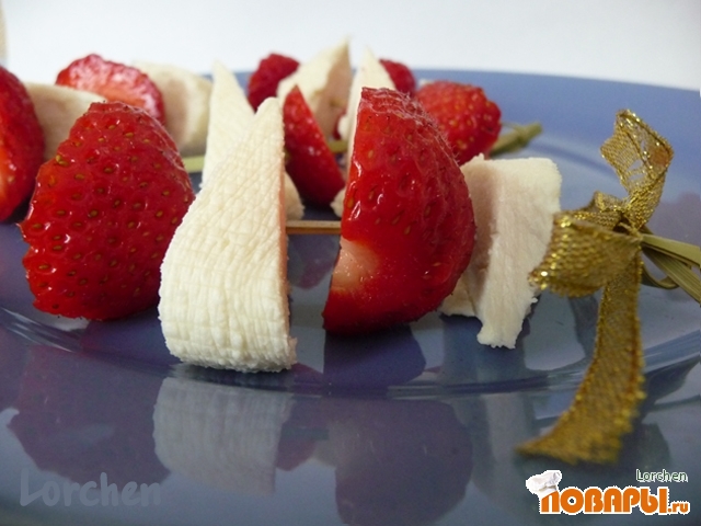 Нанизываем на шпажку поочередно клубника - сыр.