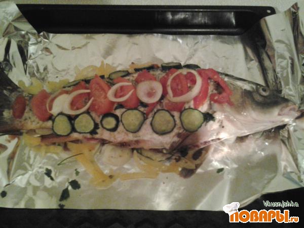 Карп, запеченный с овощами