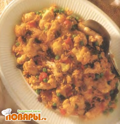 Сладкий изюм и нежный горошек придают этому аппетитному плову изысканный вкус, а соус карри экономит время, потому что специи приготовлены заранее. Соцветия цветной капусты и пряный соус из сладких фруктов превращают этот плов в необычное блюдо.
