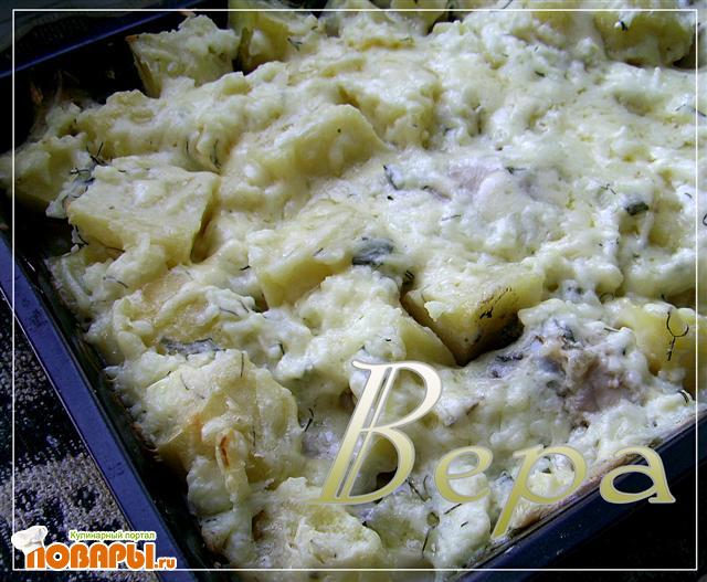 Картофель с курицей, запеченный в сыре