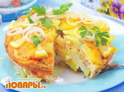 Залить омлетной смесью запеканку и поставить еще на несколько минут в духовку.