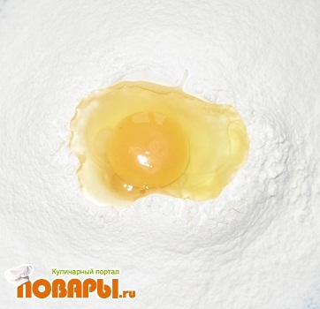 Для начала варим курицу, до состояния, когда мясо отходит от косточек, хорошо если она будет домашняя, такая курочка варится дольше, но бульон от неё, получается значительно вкуснее. Пока бульон варится, займемся тестом. Для этого, высыпаем горкой, муку на стол, делаем углубление, вбиваем яйцо,