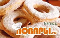 Готовое печенье горячим выложить на блюдо, посыпанное сахарной пудрой и обсыпать пудрой печенья сверху – как можно гуще, чтобы печенья оказались в сахаре со всех сторон. Остывшее печенье переложить в вазу или в коробку для хранения.