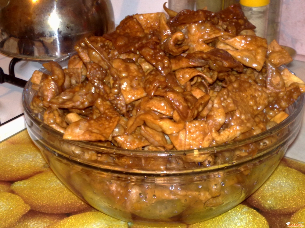 Ух, какой хворост аппетитный. Просто чудо! Надо и себе попробовать заливать сиропом. П хворост после этого становится мягким?