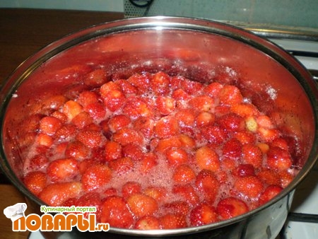 Сок с клубники нужно варить в течение двух дней, периодично (довести до кипения и поставить холодить, итак в день три - четыре раза). Тогда сок будет светлым и густым.