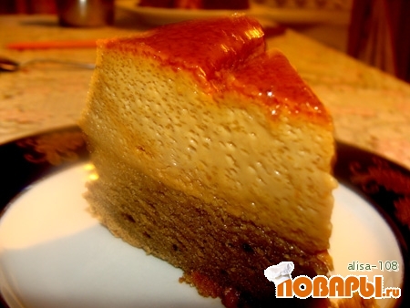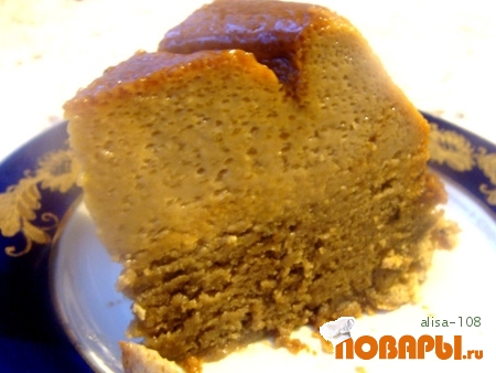 Все это сооружение отправляем в духовку, предварительно нагретую до 180 градусов. Верх бизкофлана надо прикрыть фольгой. Выпекается (по крайней мере у меня) долго, примерно час-полтора. После выпекания, я просто выключила газ в духовке и оставила еще на какое-то время остывать.