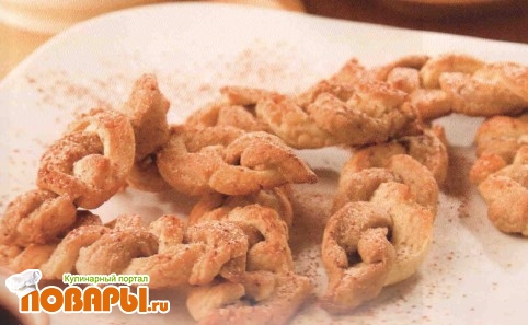 Из готового теста сформуйте тонкие жгутики и переплетите их в косички, выложите на противень, смазанный маслом, выпекайте 15 минут при 190 °С.
