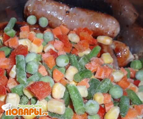 - Овощи, смесь, замороженая (Мексиканская смесь: кукуруза, паприка, зеленая стручковая фасоль, зеленый горошек, морковь )