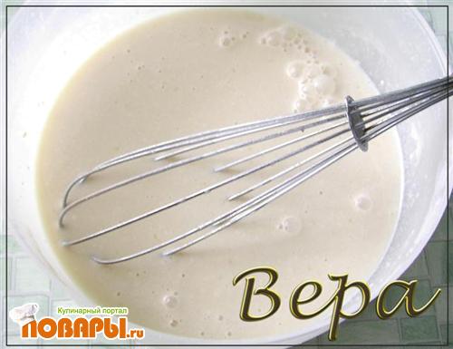 Продолжая взбивать добавить муку(тесто должно быть густым, без комочков).