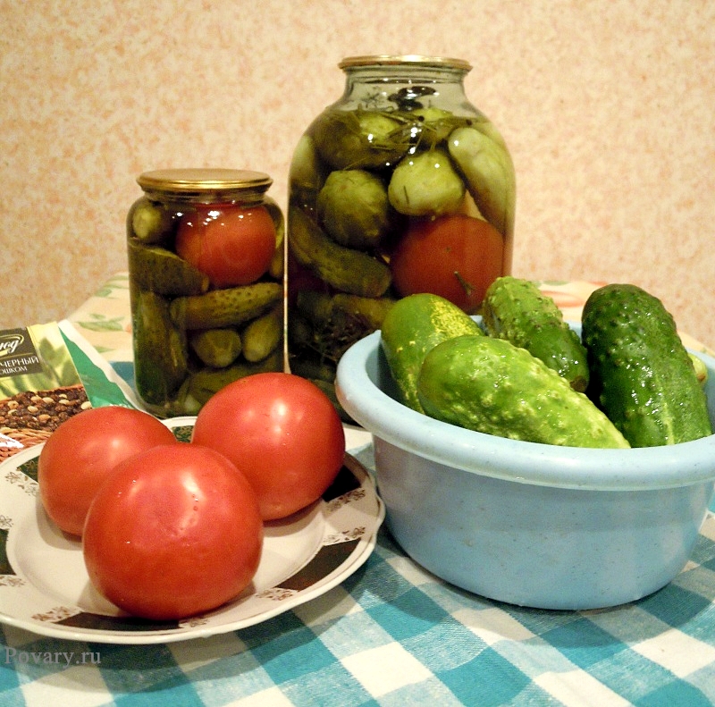 Консервированные огурцы с томатами