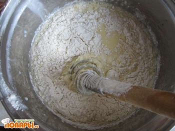 В полученную смесь добавляем столовую ложку растительного масла и измельченную зелень. Все хорошо перемешиваем.
