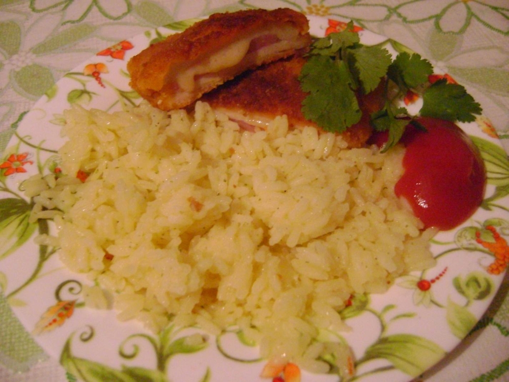 Куриное филе хорошо отбить, посолить, поперчить. Положить внутрь кусочек ветчины и сыра, склоть зубочитской. Макнуть в яйцо, запанировать в сухарях и обжарить до золотистого цвета.