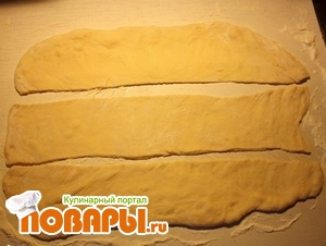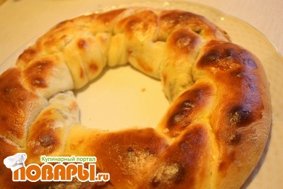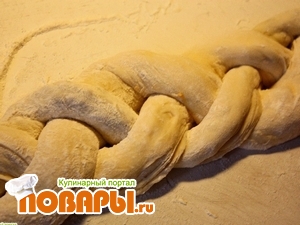 Косичку смазываем взбитым желтком, ставим в разогретую до 180 градусов духовку на 30 минут. Перед подачей на стол посыпаем сахарной пудрой, также можно использовать молотые орехи.