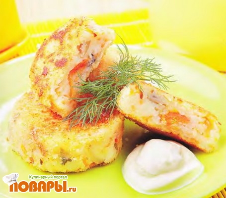 Капустное тесто в ладони размять в лепешки, положить начинку и сформировать котлетки.