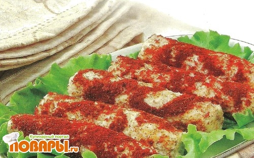 Мелко порубите мякоть крабов, смешайте с сыром, орехами и соусом табаско. Сформуйте из массы небольшие палочки и обваляйте в паприке.