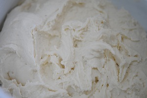 Добавлять понемногу воду и замешивать тесто, пока оно не приобретет консистенцию густого крема.