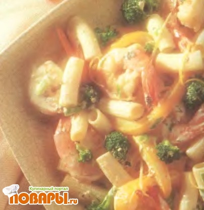 Креветки с лимоном и ригатони