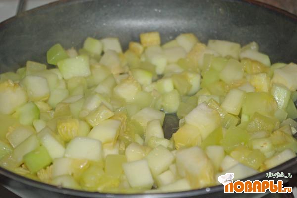 Немного обжариваем кабачок. У меня был довольно большой кабачок.