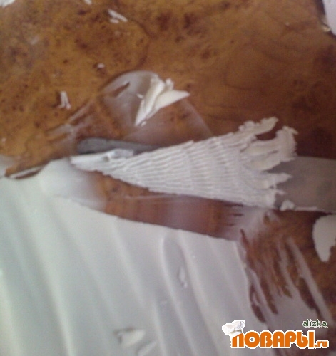 Творожок взбить со сгущенным молоком и добавить растопленный черный шоколад, и вмешать аккуратно взбитые сливки.
