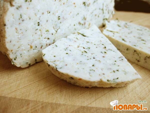 Все, откидываем массу на сито, выстеленное марлей, отжимаем, прессуем и подвешиваем стекать и остывать.