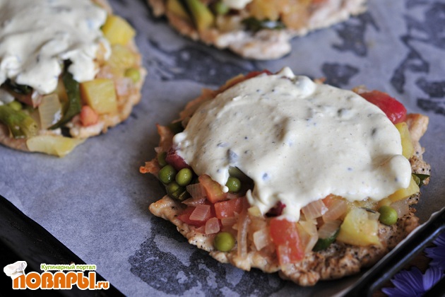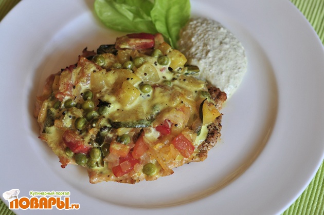 Куринная отбивная «Месье Корше» с овощами и соусом
