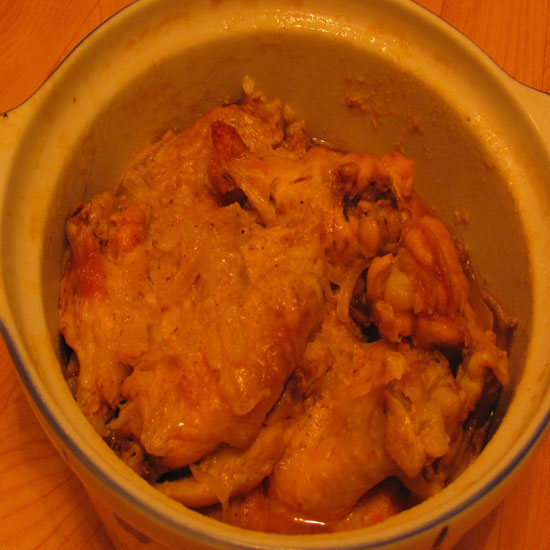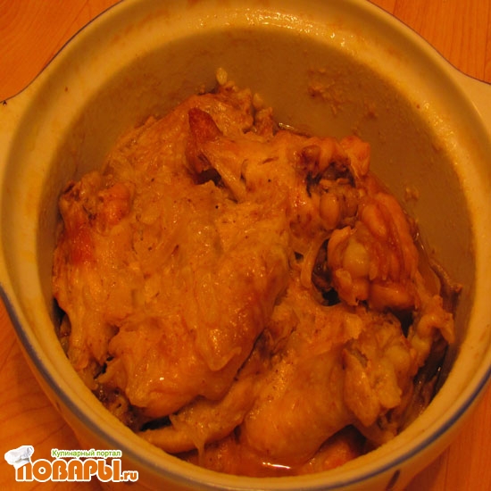 Все специи и лук тщательно перемешиваем с крыльями, складываем все в керамическую кастрюлю или любую стеклянную емкость с крышкой, и в микроволновку!