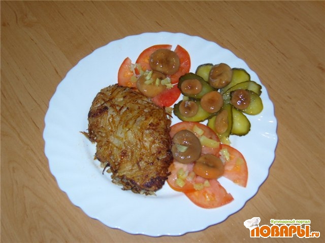 Помимо овощей на тарелку выложила приготовленные вчера рыжики по-венесуэльски.