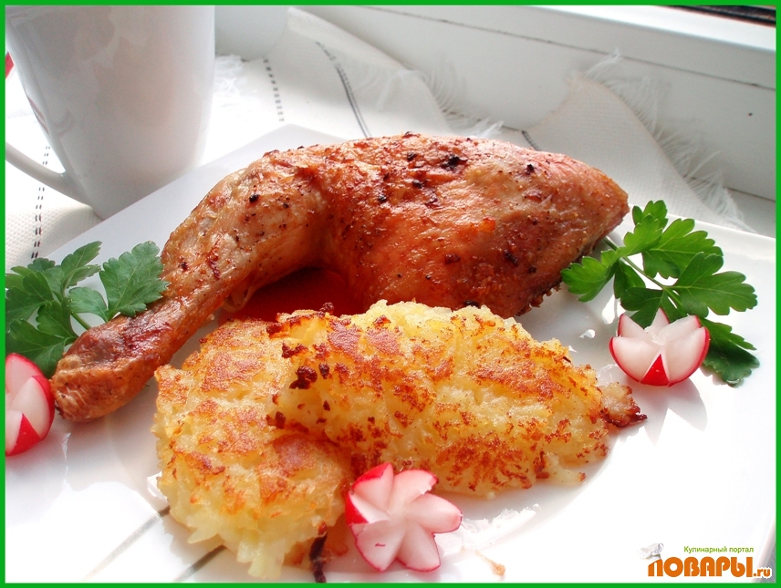 Приготовить маринад из давленного чеснока, масла и сока лимона. Кожу на окорочках отделить от мяса и приподнять, залить в "кармашки" маринад, растереть. Смазать оставшимся маринадом куриные ножки сверху и оставить мариноваться на 1 час.