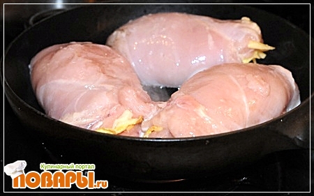 Филе курицы – в зависимости от порций ( у меня 3 шт.) Яйца – в зависимости от порций ( у меня 3 шт.) Сыр – 50-100гр. Лук – 1 шт. среднего размераСметана – 0,5 стакана