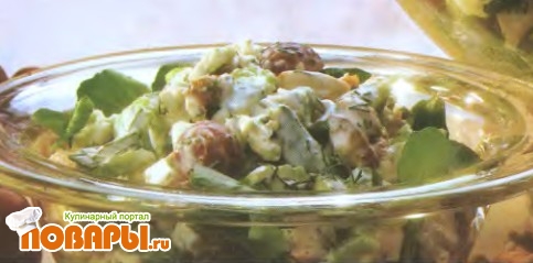 Яблоки, сельдерей и грецкие орехи - ингредиенты классического салата, впервые приготовленного в гостинице «Уолдорф-Астория» в Нью-Йорке. В кислый сливочный соус для салата "уолдорф" входят: голубой сыр, йогурт, пахта или сметана. С этой пикантной заправкой хорошо сочетаются куриное мясо, сладкий горошек и виноград.