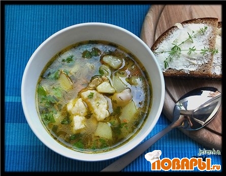 С помощью двух смоченных водой кофейных ложек сформируйте из теста клёцки и варите их в приправленной солью воде или супе до тех пор, пока не разбухнут и не поднимутся на поверхность.