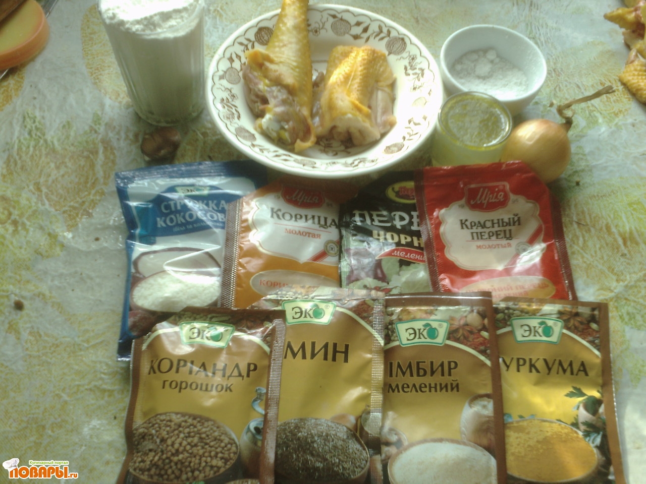 - 1,5 кг Курица, сырая (порезать на кусочки)