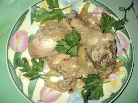 Курицу осмалить от оставшихся перышек, при желании снять кожицу, хорошо промыть и обсушить бумажным полотенцем. Разделать на небольшие кусочки.
