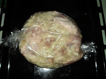 Все хорошо перемешать и оставить мариноватся. А тем временем включить духовку и прогреть до 180 градусов. Закрываем пакет клипсами, предварительно выпустив воздух, и отправляет в духовку.