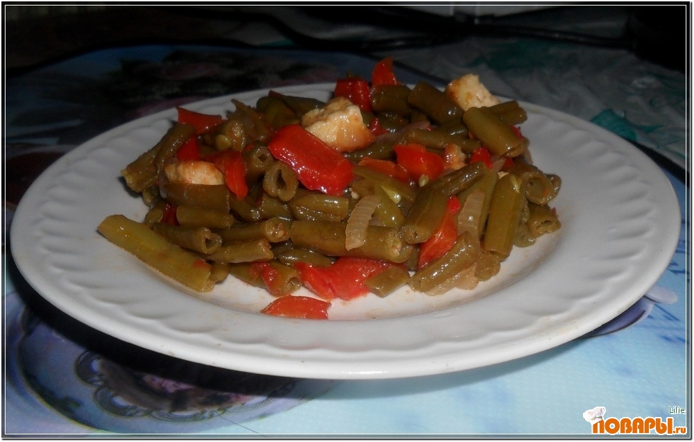 Обжарили сыр - вынули его и на том же масле тушим овощи, предварительно порезанные на кусочки. Пропорции овощей я брала произвольные. В рецепте ещё должна быть морковь, но я про неё совсем забыла.