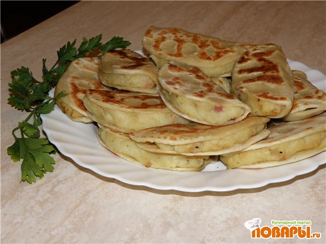 А вообще, кто сало не потребляет, можно картофель с готовым фаршем намять, а можно просто обычное пюре, но без молока. Можно с маслом сливочным и укропом.