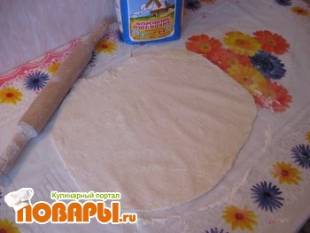 Тесто делю на две части и раскатываю каждую толщиной не более 6-7мм, так как потом в пароварке тесто распушивается, становится как бы больше, толще.