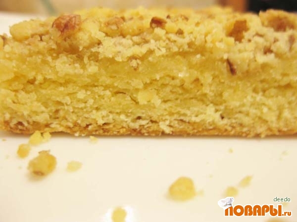 Для штрейзеля возьмем грамм 30 сливочного масла, около 4 ст.л. муки и столько же порубленного грецкого ореха, можно добавить сахарный песок. Перетираем смесь в крошку, добавляя, если необходимо, муку и орехи.