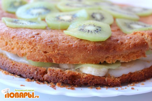 Лимонный бисквит с киви и бананом