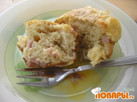 Яйца взбить с солью и перцем, влить молоко и добавить размягченное сливочное масло, перемешать, всыпать просеянную муку и соду, замесить тягучее тесто, добавить сыр и ветчину, размешать.