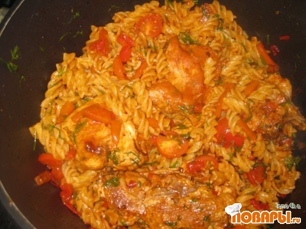 Макароны с курицей