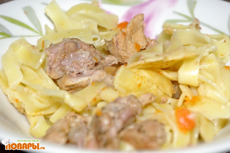 Отдельно сварила макароны до полуготовности. Можно их и варить в мульте, но я не люблю переваренные макароны, поэтому мне проще вот так)