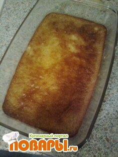 Вылить в форму, запечь в духовке при 1750 до румяной корочки.