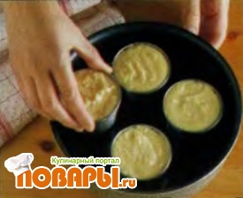 Распределите смесь по порционным формочкам. Установите формочки в низкую кастрюлю на водяную баню и поставьте в нагретую духовку на 20 минут.