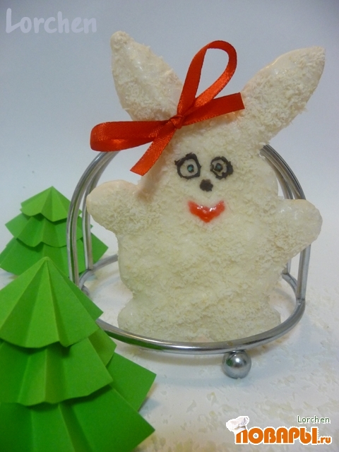 На противень, выстеленный бумагой для выпечки, выкладывать ложкой меренги в форме "кролика".